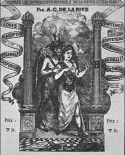 Ritualul în cauză a avut loc pe data de 8 aprilie 1885. Diana a fost dusă la Sanctum Regnum, „templul” satanic în care se desfăşurau ritualurile satanice ale înaltei francmasonerii. Ea relatează că acest „templu” avea în centru statuia lui Baphomet, foarte hidoasă, dezgustătoare. Statuia i-a provocat o impresie foarte neplăcută, deşi membrii lojii s-au străduit să îi explice de ce „Bunul Dumnezeu” avea o înfăţişare atât de cumplită. După ce au fost rostite invocaţiile satanice, Diana a fost lăsată singură în încăpere, Albert Pike spunându-i să privească fix statuia lui Baphomet. Ea a trăit atunci o stare de comuniune cu sfera de forţă infernală a lui Lucifer, pe care ea o credea o manifestare a „Dumnezeului cel Bun”. „Nu vedeam nimic în jurul meu, doar flăcări, care mă înconjurau fără să îmi ardă hainele. Mă gândeam cu bucurie că eram în flăcările divine. Şi toată inima mea bătea pentru Lucifer,” a mărturisit ea arătând în „Memoriile” sale modul în care gândea ea atunci, în inocenţa ei. Ea descria acolo cum s-a manifestat un fulger, de şase ori, cu tunete puternice.