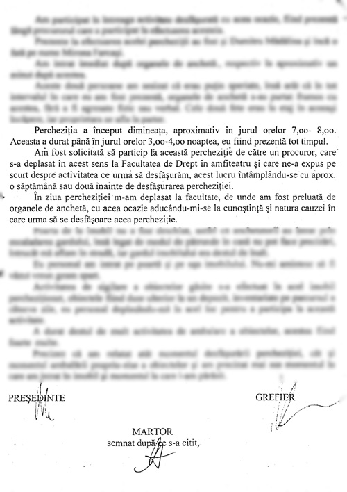 Prezentăm câteva fragmente din declaraţiile martorilor asistenţi: