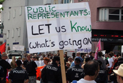 Manifestațiile de protest împotriva reuniunii Bilderberg nu au lipsit nici în acest an. Pe 13 iunie, 500 de persoane au demonstrat paşnic în localitatea Telfs, cerând insistent mărirea transparenţei acestor întâlniri. Unii jurnalişti independenţi prezenţi la faţa locului au fost hărţuiţi în repetate rânduri de către poliţişti, fără vreun motiv legal evident.