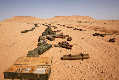 În fotografia de mai sus vedem un drum în actuala Libie care este presărat cu muniţii abandonate întrucât nu au putut să mai transporte atât de mult cât au furat.
