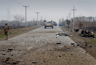 O deflagraţie pe marginea unui drum în Afganistan, produsă la trecerea unui autovehicul de luptă aparţinând forţelor germane. Doi militari foarte grav răniţi.