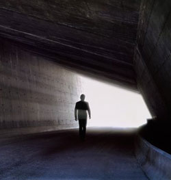Apoi, brusc am fost „răpită” din spaţiul/timpul în care mă aflam, am fost „trasă” cu o viteză fantastică printr-un fel de tunel curb (în sus) şi proiectată (m-am „oprit”) într-un „loc” luminos, necunoscut. Această „trecere” prin „tub” am perceput-o cu o viteză foarte mare, ca şi cum aş fi trecut printr-o succesiune foarte mare de vieţi/existenţe şi, în acelaşi timp, am simţit distinct cum voi trece prin toate fazele de maturizare, îmbătrânire şi apoi voi muri în viaţa aceasta. Deşi eram martoră la propria-mi îmbătrânire şi moarte, aveam o stare de înţelegere lucidă şi de detaşare, de parcă priveam toate acestea de undeva de sus.