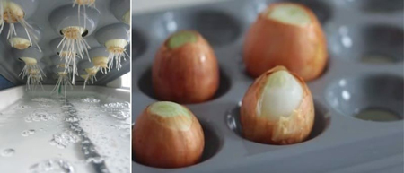 Dacă vă încântă ideea unei culturi mai mari și nu vreți totuși să investiți într-un sistem hidroponic, puteți să vă faceți singuri unul. Tot ce aveţi nevoie este un cofraj de ouă adecvat (poate două, în funcție de mărime). Este necesar să obțineți două cofraje de aceeași dimensiune, cu suficiente alveole pentru numărul de cepe pe care le cultivați. Pregătiți cofrajul superior făcând găuri potrivite pentru pătrunderea rădăcinilor cepei. Umpleți recipientul inferior cu apă și așezați apoi cofrajele unul peste celălalt, distanțate, cu ajutorul unor bețigaşe (cum sunt bețele de orez).