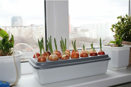 – Pentru a accelera creşterea culturilor, puteţi folosi o lampă fluorescentă pe perioada nopţii. Mai ales iarna, scurtarea zilei influenţează semnificativ dezvoltarea culturilor de ceapă verde.