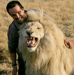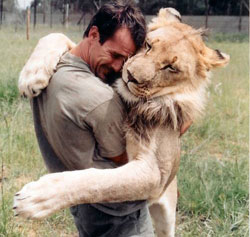 În urmă cu un an a început să circule pe YouTube un videoclip despre un bărbat dintr-un parc de animale din Africa de Sud. Imaginile îl arătau pe acesta desfăşurându-şi activităţile zilnice în cadrul rezervaţiei, privind în ochi unele dintre cele mai feroce patrupede de pe Terra, aplecându-se la nivelul lor, jucându-se cu ele, dormind cu ele şi câteodată chiar pupându-le pe botic, fără ca măcar o dată să fie rănit sau atacat.