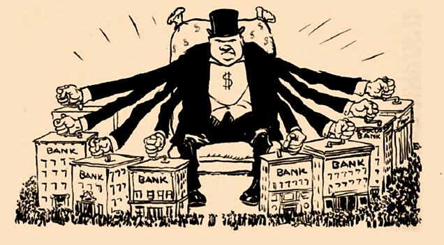 Dar chiar și în spatele controlului asupra petrolului s-a aflat controlul asupra băncilor și colectarea profiturilor provenite din dobânzi. Ori de câte ori SUA preia controlul asupra unei țări, băncile sunt cele care se mută primele, deseori cu Fondul Monetar Internațional în fruntea preluării. Acest control este executat de „șacalii” care lucrează pentru agențiile de informații.