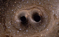 Undele gravitaționale sunt create de către unele dintre cele mai violente evenimente din Univers. În cazul de față, a avut loc fuziunea a două găuri negre prinse într-un dans mortal, executat în spirală. În ciuda originilor lor extreme, undele gravitaționale au rămas necunoscute multă vreme, întrucât efectele lor asupra Universului sunt discrete.