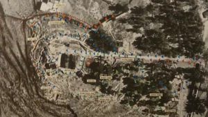 Acesta a observat o zonă care avea aceeași dimensiune și formă ca desenele de pe peretele palatului și care ducea la niște ruine care conțineau rămășițele unui zid perimetral și cioburi de ceramică.