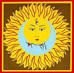 Statutul relativ al Soarelui şi al Lunii este adesea descris asociind Soarele cu principiul înşeptit al sistemului nostru planetar, iar Luna cu principiul împătrit, care provine din setea de existenţă senzorială, TRISHNA. Este dorinţa de a experimenta înrădăcinată în organele de simţ şi în calităţile senzoriale care acţionează prin elementele produse de minte. Mitologia puranică referitoare la Luna care şade într-un car cu trei roţi şi tras de zece cai albi, cinci pe dreapta şi cinci pe stânga, este o astfel de alegorie, identică celei a carului solar cu trei falduri şi cinci spiţe.