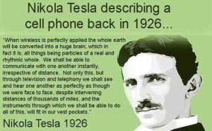 Tehnologia fără fir s-a bazat în mare parte pe invențiile lui Tesla. Nikola Tesla a prevăzut apariția telefonului mobil cu peste nouăzeci și nouă de ani în urmă, în 1926: