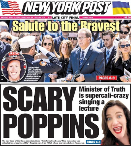 Există scandalul Scary Poppins, de exemplu, în care administrația Biden a încercat să o numească pe binecunoscuta răspânditoare de dezinformare și susținătoare a cenzurii Nina Janckewicz ca șefă a „Consiliului de guvernanță pentru dezinformare”, numit astfel în mod înfiorător.