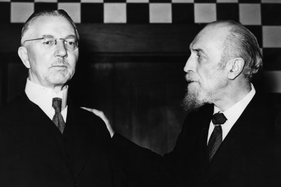 Ei bine, pe 4 ianuarie 1932, are loc o întâlnire între Montagu Norman, Guvernator al Băncii Angliei cu Adolf Hitler și ……. Franz von Papen. Scopul întâlnirii? Finanțarea Partidului Nazist! Pare incredibil, nu-i așa? Dar e absolut adevărat. De asemenea, la întâlnire au participat și influenții frați Dulles (Allen și Foster). Ei sunt mai puțin cunoscuți acum, dar e suficient să înțelegeți influența lor dacă vă spun o chestiune banală: în 1953 Allen Dulles devine al cincilea conducător al CIA, asta după ce în 1951 fusese numit adjunct al șefului CIA. Cățărarea lui Allen Dulles la șefia CIA s-a produs ca efect al unui cutremur politic, declanșat în 1949 prin așa-numitul „Raport Dulles-Jackson” referitor la Coreea, raport care a dărâmat conducerea de atunci a CIA. Am făcut paranteza pentru a înțelege că frații Dulles erau influenceri de primă mână ai politicii americane.
