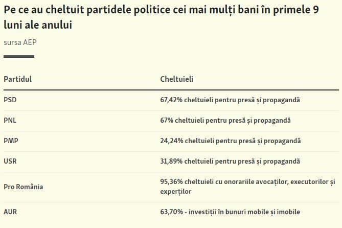 Numai că, la o scurtă primă vedere, putem observa cum principalele partide politice din România au cheltuit cei mai mulți bani din subvențiile de la stat pentru presă și propagandă, conform unui raport al Autorității Electorale din România. PSD, de pildă, a primit pentru ianuarie-septembrie 2023 subvenție de 76,3 milioane de lei, din care a cheltuit peste 62 milioane de lei (67,42% din totalul banilor primiți) doar pentru ……. presă și propagandă.