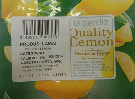La o simplă citire a etichetei de pe o pungă cu lămâi importate din Spania putem afla că acestea au fost tratate cu trei tipuri de pesticide, respectiv imazalil, pirimetanil si procloraz.