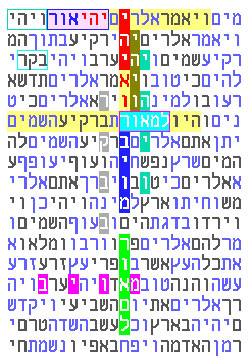 Cu ajutorul unui calculator sunt căutate în această matrice, ce este formată de textul biblic adus în forma descrisă mai sus, cuvinte şi fraze ascunse. Pentru aceasta, se începe de la prima literă a Bibliei şi se caută, pentru fiecare secvenţă de intervale posibilă, cuvintele pe care noi le solicităm, care sunt descifrate cu intervale de una, două, trei litere ş.a.m.d., până la câteva mii. Apoi se repetă aceeaşi operaţie de căutare începând de la cea de a doua literă şi se continuă astfel până la ultima literă a Bibliei. După ce găseşte mai întâi cuvântul cheie, calculatorul începe să caute informaţii asociate aflate cât mai aproape de acesta. Astfel, de exemplu, unde a fost găsit numele Rabin, se aflau alături şi alte date: Amir (care s-a dovedit ulterior a fi chiar numele asasinului), Tel Aviv, anul ebraic 5756 care începea în septembrie 1995, toate aceste informaţii reale fiind codificate în acelaşi pasaj.