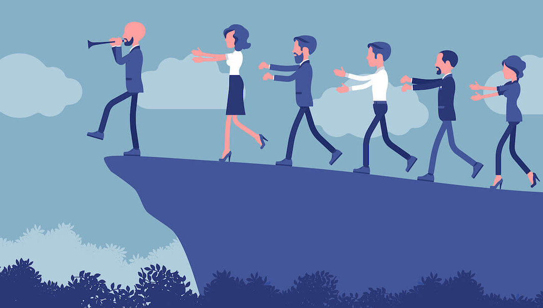 Turma se aruncă de pe stâncă. Există un foarte răspândit complex care le spune că nu este adevărat, că nu vor păți nimic atunci când se vor izbi de stâncile din prăpastie.