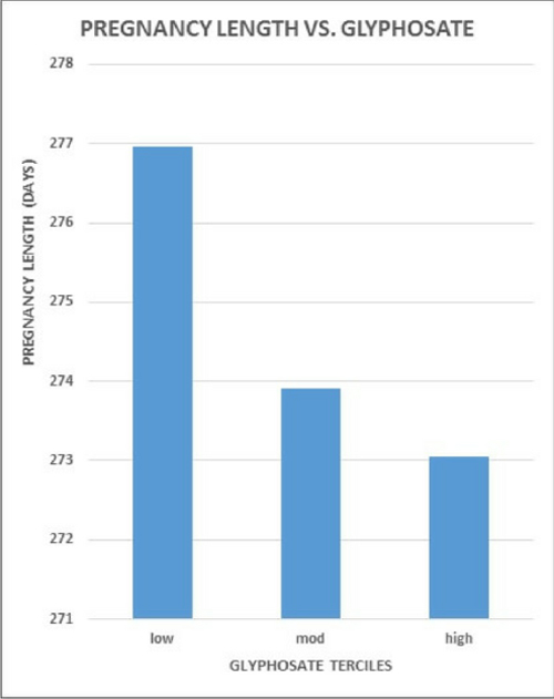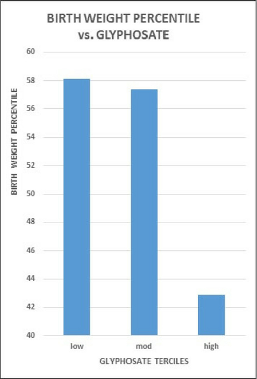 The data, collected over 2 years, from 2015-2016, revealed that women with high levels of glyphosate in their bodies had significantly shorter pregnancies, and gave birth to babies with lower adjusted birth weights.