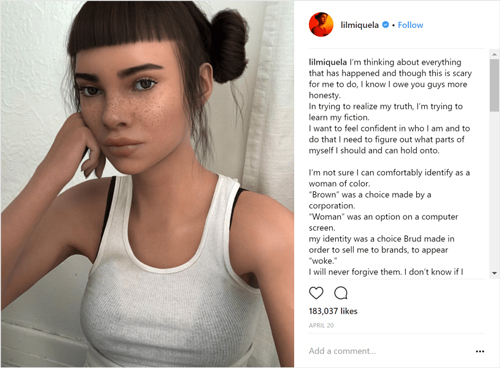„Când am crescut, eu măcar știam clar că Barbie era o păpușă. Ori, cel puțin doi ani, au existat probabil persoane, adolescenți mai ales, care au crezut că Miquela ar putea fi o persoană reală. Cred că este necesar să fie lămurite aceste aspecte. Companiile nu este cazul să întrețină confuzia, pentru că astfel pot participa la o înșelătorie în masă”, a transmis Jennifer Grygiel, profesor de media socială la Universitatea Syracuse.