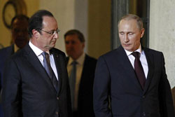 La începutul lunii decembrie, Francois Hollande a avut o întâlnire de urgenţă cu preşedintele rus Vladimir Putin. Şeful statului francez se afla în vizită în Kazakhstan, iar la întoarcerea spre Paris, avionul său a aterizat la Moscova, pentru o întâlnire urgentă şi neprogramată cu Putin, care s-a desfăşurat chiar în aeroport, pentru foarte scurt timp. Oficial, cei doi au discutat despre criza din Ucraina. Este însă greu de crezut că preşedintele Franţei ar fi cerut o scurtă întrevedere de urgenţă cu Putin, într-un aeroport, pentru a discuta acest subiect. Se pare că întâlnirea s-a desfăşurat în secret, într-o cameră securizată în care nu funcţiona niciun echipament electronic.