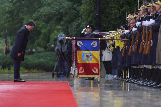 Pe o ploaie cumplită și rece (care poate să însemne și bogăție, dar și inundații), care ar fi alungat și pisicile rătăcite, la Palatul Cotroceni s-au strâns toate vedetele partizane precum și cele oportuniste ca să asiste și să se bucure (sau să fie văzute!) că au fost de față la un ploios onor pe fugă, ca într-o poezie de George Bacovia.