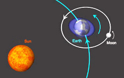 • Rotația Pământului. În cazul Pământului, fenomenul de producere a mareelor nu are drept cauză mișcarea de rotație a planetei. Poziția polilor magnetici ai Pământului, la o distanță de aproximativ 20° față de polii săi geografici, poate fi legată de mișcarea sa de rotație. O dată pe zi, polii magnetici ai Pământului se poziționează geografic la extrema nordică, respectiv sudică, în raport cu liniile de forță ale câmpului magnetic solar.