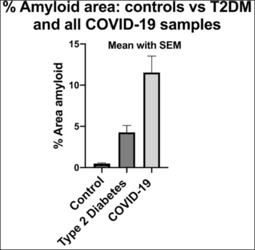Cercetătorii au descoperit că eşantioanele de plasmă de la pacienţii cu covid lung conţin încă depozite anormale (amiloide) de mari dimensiuni, micro cheaguri, care sunt rezistente la fibrinoliză (în comparaţie cu plasma de control şi diabet) chiar şi după tripsinizare (disocierea celulelor după ce o enzimă descompune proteinele).