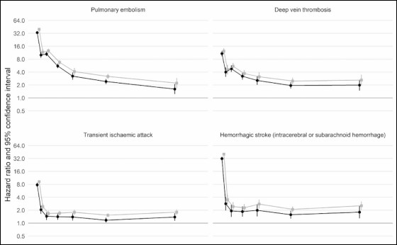 Acest fenomen a dus la un număr estimat de 10.500 de cazuri suplimentare cu probleme legate de cheaguri, adică aproximativ 7.200 de atacuri de cord sau accidente vasculare cerebrale suplimentare şi 3.500 de cazuri suplimentare de embolie pulmonară, tromboză venoasă profundă sau alte probleme venoase.
