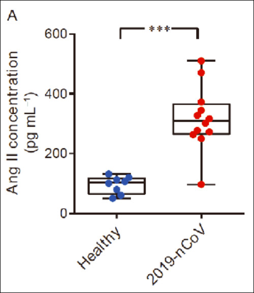 Datorită faptului că proteina Spike interacţionează direct cu manifestarea ACE2, pacienţii cu covid-19 au prezentat un nivel ridicat de angiotensină II serică, ceea ce indică o dereglare a sistemului RAA (sistemul renină-angiotensină-aldosteron sau RAAS).