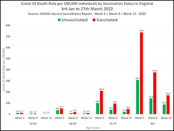 Agenția britanică de securitate sanitară joacă, de asemenea, același joc ca și Public Health Scotland și, de la 1 aprilie 2022, a refuzat să mai publice date privind cazurile de covid-19, spitalizările și decesele în funcție de statutul de vaccinare.