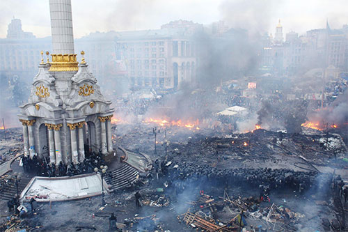 – Provocarea și înscenarea de către serviciile secrete vestice a protestelor sângeroase din Ucraina, din 2013-2014. Mai multe surse (de exemplu BBC) arată că agenți ai SUA au angajat demonstranți și mercenari ca să împuște fără discriminare oameni din mulțimea ce protesta în piața din centrul Kievului. SUA se asigura astfel că protestele vor degenera într-un război civil şi că în acest mod se va deschide larg uşa pentru intervenţia americană în „coastele” Rusiei.