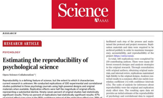 Când, în august 2015, revista Science a publicat articolul „Estimating the reproducibility of psychological science” (Evaluarea reproductibilității științei psihologice), o cutie a Pandorei s-a deschis: Un grup de cercetători care au încercat să reproducă rezultatele experimentelor psihologice publicate în 100 articole peer-reviewed, au găsit că doar 35 pot fi replicate.
