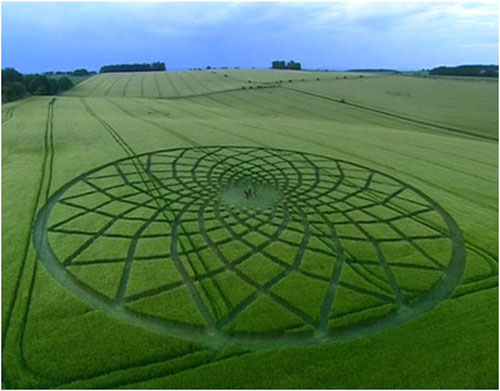 Mystérieux dessins de grande taille tracés dans les champs. Plus précisément, les crop circles sont en général des motifs géométriques tracés en couchant des épis de blé ou de céréales similaires. Habituellement de grande taille, ils ne sont souvent visibles dans leur totalité que depuis une position surélevée et sont fréquemment créés pendant la nuit.