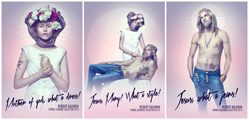 Campania publicitară în cauză a promovat haine create de designerul Robert Kalinkin. În materialele publicitare apar un bărbat cu părul lung și o femeie în rochie albă care aduc a Iisus și Fecioara Maria. Iată mesajele din reclamă: „Iisuse, ce blugi ai!”, „Maria, ce rochie ai!”, „Maica Domnului, ce rochie ai!” și „Iisuse și Maria, ce haine purtați!”.