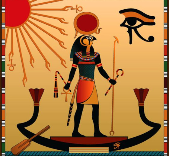 Ra-Horakhty: Soarele de amiază, simbolizat de un disc solar cu un șoim, reprezentând puterea și vigoarea maximă a soarelui.