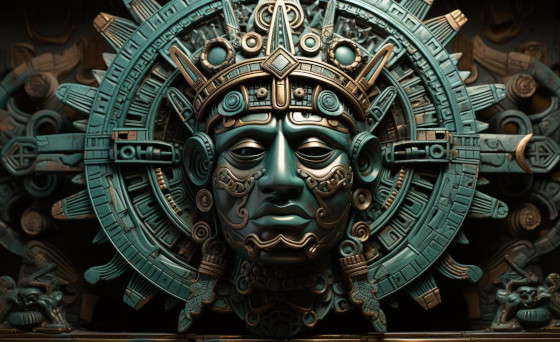 TONATIUH ‒ Zeul soarelui Tonatiuh era esențial în religia aztecă. Aztecii credeau că soarele avea nevoie de sacrificii umane pentru a-și păstra puterea și a continua să lumineze lumea. Piramidele aztece, cum ar fi Piramida Soarelui din Teotihuacan, sunt mărturii ale acestui cult. Liderii azteci se considerau protejați de Tonatiuh și utilizau imagini ale zeului pentru a sublinia legitimitatea și divinitatea puterii lor.
