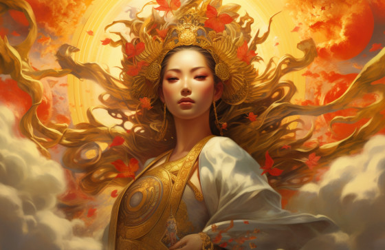 AMATERASU ‒ Zeița soarelui Amaterasu este una dintre cele mai importante divinități shintoiste și este considerată strămoașa familiei imperiale japoneze. Cultul său este central în religia shinto, iar Marele Sanctuar din Ise este principalul loc de venerare.