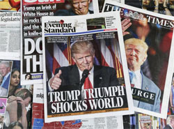 „Trumpland”, a titrat tabloidul britanic Daily Mail, care a descris competiția electorală drept „cea mai extraordinară campanie prezidențială din istoria modernă”. Cotidianul britanic The Guardian scria simplu: „Victoria lui Trump șochează lumea”.