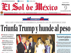 În Mexic, presa s-a concentrat pe scăderea puternică a valorii monedei naționale, peso, la cel mai redus nivel înregistrat vreodată. „Dolarul sparge bariera”, titra El Sol de Mexico, unul dintre principalele ziare din capitala federală mexicană. De altfel, și ziarele din întreaga Europă au scris că data de 9 noiembrie va fi ținută minte drept „o zi neagră” pentru piețele financiare. The Guardian descria tumultul piețelor drept „Mai mare decât la Brexit”, iar cotidianul francez Les Echos scria despre „O zi neagră pe piețe”.
