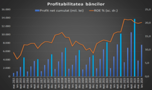 Pentru comparație, rata anualizată a inflației la finalul anului trecut a fost de 6,6%. În aceste condiții, anul trecut, băncile au realizat un profit de 13,5 miliarde de lei, cu care se situează printre fruntașii europeni la indicatorul rentabilității capitalurilor proprii (ROE‒ return on equity), indicator situat constant în ultimii ani în jur de 20%!