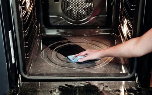 În cazul zonelor cu mâncare arsă, se recomandă o pastă groasă din bicarbonat şi apă, pe care o aplicaţi pe pereţii cuptorului. Lăsaţi să acţioneze peste noapte, iar în ziua următoare curăţaţi cu o spatulă ori cu un burete aspru. Dacă tot rămân pete, presăraţi încă puţin bicarbonat de sodiu şi apoi pulverizaţi cu oţet. Aşteptaţi circa 30 de minute, apoi curăţaţi.