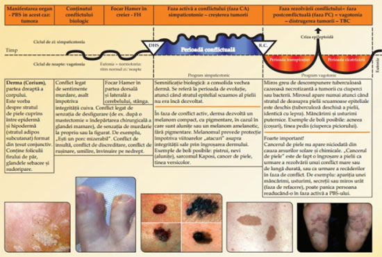 La acest tip de conflicte, reacţia biologică este îngroşarea dermei, pentru crearea unui scut de apărare. Vedeţi mai jos explicaţiile traduse din cartea doctorului Hamer despre cele cinci legi biologice ale naturii.