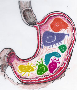 Tulpinile probiotice din comerţ sunt bine echipate pentru a străbate mediul aspru al stomacului şi al intestinului subţire şi a se stabili în intestinul gros. Aici, microbii ştiu foarte bine să comunice cu corpul. Ca mulţi alţi membri ai populaţiei microbiomului, care au impact asupra sănătăţii, şi tulpinile probiotice din comerţ funcţionează în multe feluri: