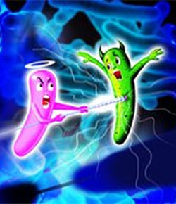 Probioticele şi alţi microbi benefici sunt experţi în manipularea mediului în care trăiesc, astfel încât să ţină la distanţă patogenii competitivi şi bacteriile nocive. Probioticele s-a dovedit că reglează expresia produselor antimicrobiene, cum ar fi defensinele şi catelicidinele, pe care organismul uman le produce în mod natural. Probioticele pot spune trupului uman şi să mărească producţia de anticorpi specifici pentru patogeni. Probioticele posedă un întreg arsenal, dar pot produce şi alte substanţe antimicrobiene, bacteriocine şi microcine. Chiar şi acizii graşi cu lanţ scurt, care sunt produşi prin fermentarea probiotică a polizaharidelor din plante, pot inhiba patogenii.