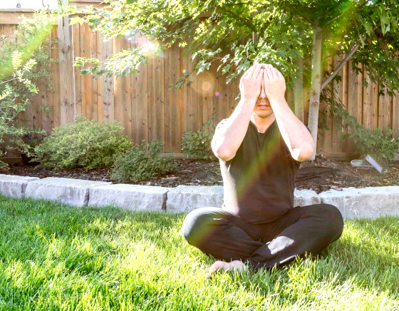 Frecaţi-vă rapid şi energic palmele una de alta, astfel încât să simţiţi o stare pregnantă de căldură. Apoi acoperiţi-vă imediat ochii, care vor fi închişi, cu palmele făcute căuş, fără a-i atinge. Palmele se sprijină atunci cu partea inferioară de pomeţii obrajilor, iar degetele ating fruntea. Respirăm apoi uşor şi ne lăsăm în voia efectului sedativ al căldurii şi al obscurităţii care este creată la nivelul globilor oculari.