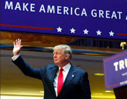 Dintr-un foc, Trump a fost capabil să susțină credibil un discurs împotriva sistemului oligarhic, fiind el însuși un oligarh. Spre deosebire de Clinton, nici nu a căutat sprijinul lobby-urilor care fac și desfac carierele politice în Statele Unite. Magnații din industria armamentului, finanțiștii de pe Wall Street și reprezentanții Israelului au preferat-o pe adversara sa. Nefiindu-le dator cu nimic, Trump a putut face procesul establishmentului ca și cum el n-ar fi făcut parte din establishment.