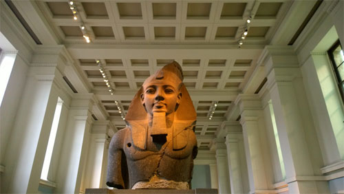 Partea superioară a statuii colosale a lui Ramses al II-lea (1279-1213 î.H.), ce provine din templul memorial de la Teba, impresionează prin mărime şi prin exactitatea detaliilor. Această statuie a fost achiziţionată, la sfârşitul secolului al XVIII- lea, de ambasadorul britanic la Roma, Charles Townley (1737-1805).