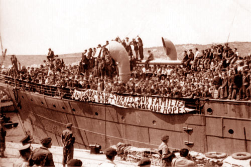 – în al doilea rând, emigrare evreiască ilegală masivă din Europa, cu finanțare din partea evreilor americani, pentru a submina restricțiile impuse de Documentul Alb, bombardarea edificiilor Pazei de Coastă a administrației mandatorii britanice și înfrângerea forței navale regale, epuizată de război;