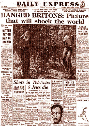 Alte inovații teroriste evreiești erau: luarea de ostatici din rândul ofițerilor britanici din Palestina și biciuirea acestora (o premieră în întreaga istorie a armatei britanice), precum și răpirea sergenților sau caporalilor britanici, spânzurarea acestora și dinamitarea corpurilor spânzurate (tot o premieră). Mințile din spatele acestor operațiuni teroriste erau Menahem Begin și Itzyk Shamir, cei care mai târziu aveau să devină prim-miniștrii ai Israelului – mentori și modele de urmat pentru Tzipii, Bibii și Libermanii de astăzi, și pentru alți politicieni israelieni contemporani (tatăl lui Tzipi Livni, Eitan Livni, a fost șeful operațiunilor lui Menahem Begin până în 1947 – The Life and Times of Menachem Begin; NewYork: Doubleday, 1987).