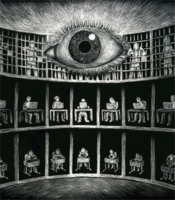 Christophe Thovex, profesor la Universitatea din Nantes, specialist în analiza reţelelor sociale, declara într‑un interviu: „Unul dintre primele «sisteme» de supraveghere, faimosul panopticon (clădire instituțională al cărei interior este de formă circulară, ce permite supraveghetorilor să poată urmări pe toţi rezidenții acesteia fără ca aceştia să ştie dacă sunt sau nu, supravegheați, n. red.), care a stat la baza arhitecturii închisorilor şi a penitenciarelor, se regăsește în final transpusă în arhitectura şi modul de funcţionare al reţelelor sociale. Aflaţi în centrul clădirii, temnicerii îi pot observa pe toţi prizonierii din celule, fără ca ei înşişi să fie văzuţi.“ Într-adevăr, acest viclean concept al sistemului panopticon se regăsește astăzi din abundenţă pe internet, transpunând în practică ideile vizionare ale lui George Orwell şi reproducând, la un alt nivel şi la o altă scară, monstruosul Big Brother, care ne-a fost servit şi nouă, românilor, probabil pentru a ne obişnui cu sistemul şi a-l integra în vieţile noastre. Dar, din fericire, nu a fost aşa, telespectatorii români săturându-se repede de banalitatea şi platitudinea oferite de acest circ ieftin.