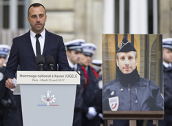 Xavier Jugele, un polițist, a fost ucis pe 20 aprilie pe Champs-Elysees și mai apoi s-a „căsătorit” cu iubitul său Etienne Cardiles. Ceremonia a avut loc pe 30 mai la primăria arondismentului XV din Paris, în prezența mai multor autorități. Fostul președinte francez, Francois Hollande, a fost printre spectatorii acestui eveniment.